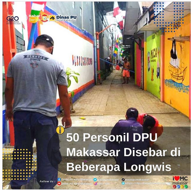 Satgas Bidang Jalan dan Jembatan Dinas PU Kota Makassar menyebar 50 orang personil ke beberapa titik lokasi lorong wisata.
