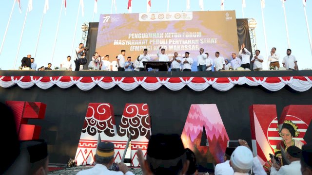 Wali Kota Makassar, Moh. Ramdhan ‘Danny’ Pomanto dikukuhkan menjadi Ketua Forum Masyarakat Peduli Penyiaran Sehat (FMPPS) oleh Komisi Penyiaran Indonesia Daerah (KPID) Sulawesi Selatan, di Anjungan City Of Makassar, Selasa (23/08). Pengukuhan ini menjadi salah satu langkah dalam meningkatkan kualitas pemilihan penyiaran khususnya di Kota Makassar.