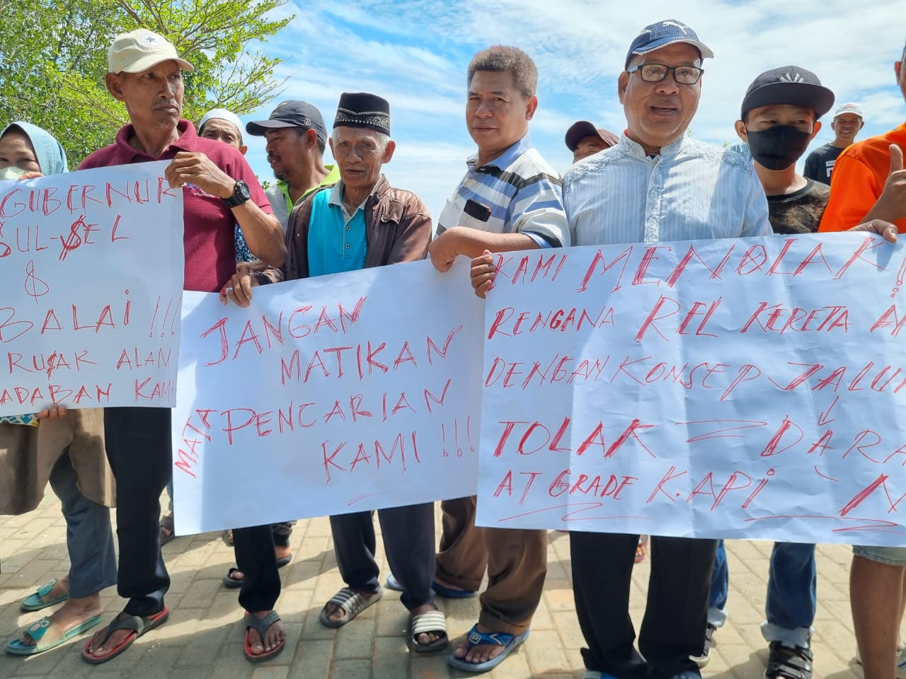 Puluhan nelayan Tallo melakukan unjuk rasa menolak pembangunan jalur rel Kereta Api (KA) at grade (menyentuh tanah) yang melintas dari arah Kabupaten Maros menuju lokasi Makassar New Port (MNP).